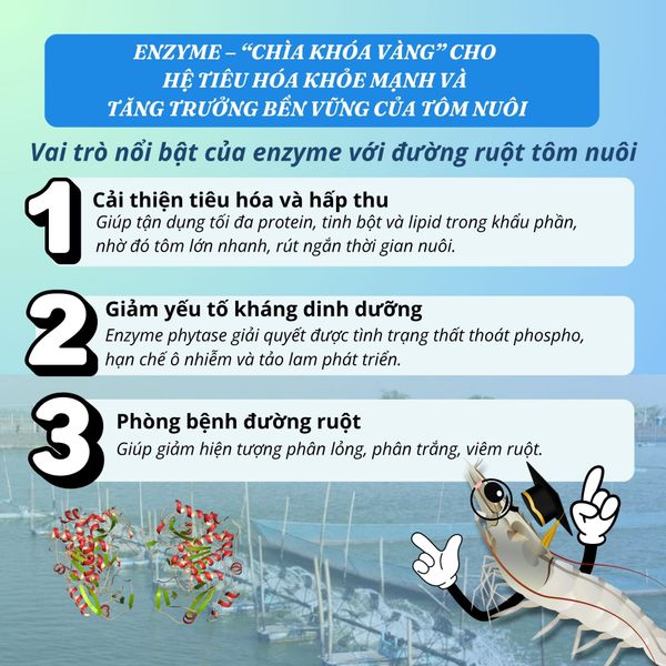 ENZYME – “CHÌA KHÓA VÀNG” CHO HỆ TIÊU HÓA KHỎE MẠNH VÀ TĂNG TRƯỞNG BỀN VỮNG CỦA TÔM NUÔI